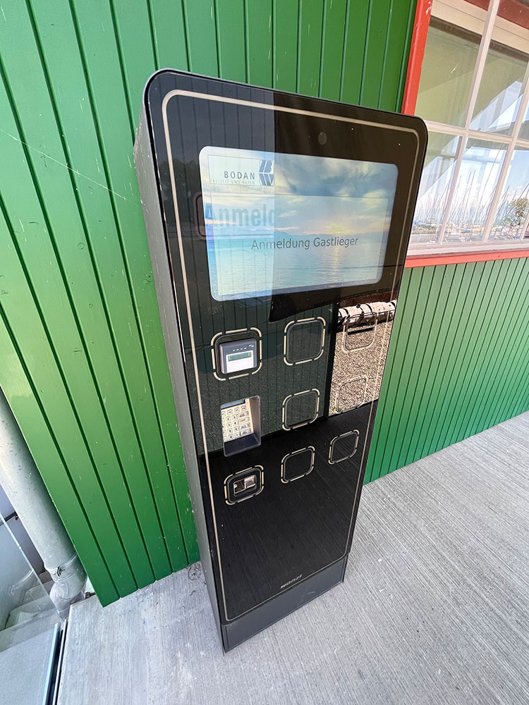 Freie Liegeplätze sind mit „frei“ gekennzeichnet. Die Anmeldung erfolgt am Gastliegerterminal am Hafenmeisterbüro. Dort bezahlen Sie am Terminal ausschließlich mit Bank-/oder Kreditkarte. Mit dem Belegausdruck erhalten Sie einen QR-Code für die Zugangsberechtigung zu den sanitären Anlagen.